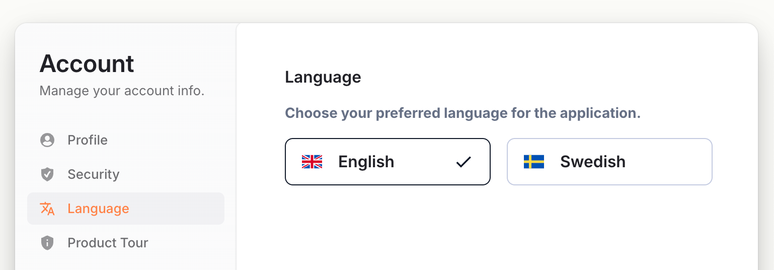 We know language matters. Now you can choose Swedish as a language across the whole platform, not just in one project.